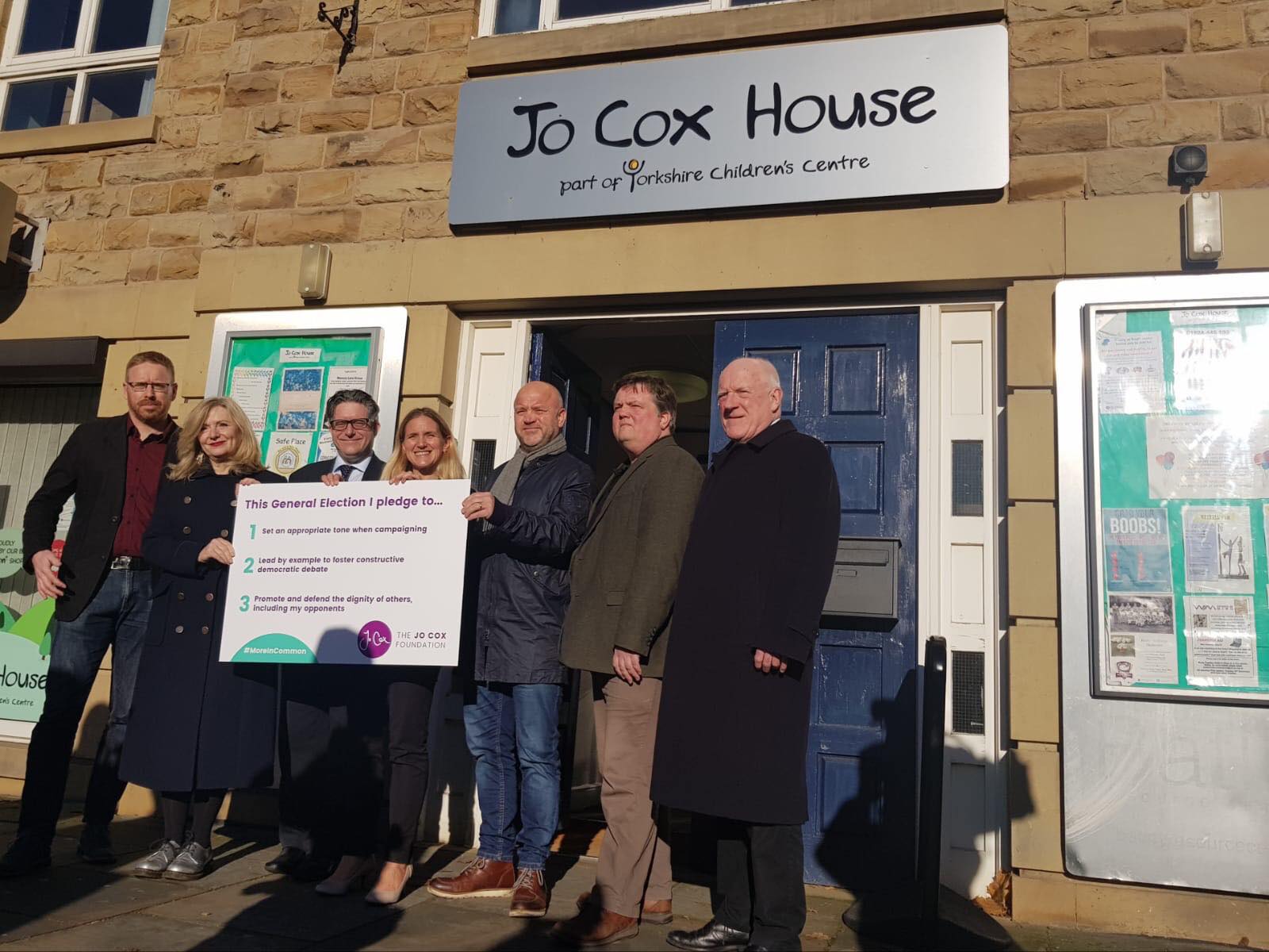 They signed the pledge outside Jo Cox House in Batley Market Square close to where the former MP was murdered during the 2016 EU referendum campaign.
