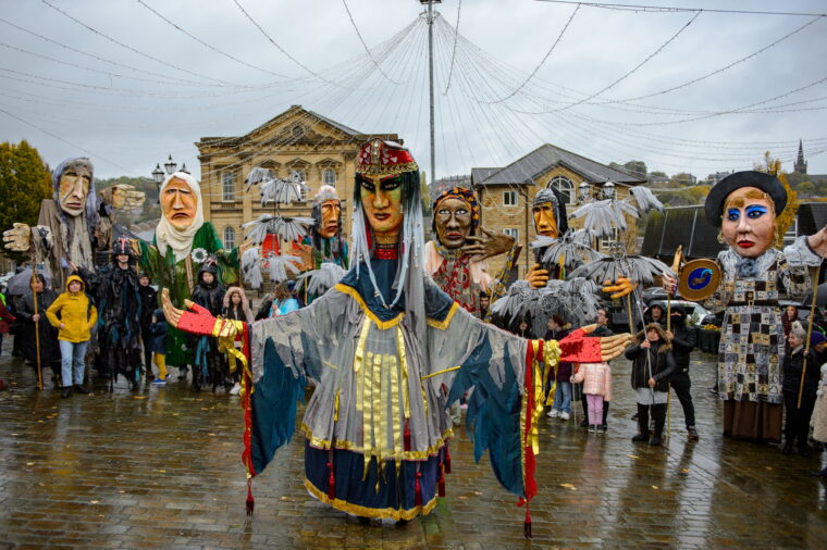 One of their largest pieces of work (quite literally) has been the Weeping Sisters, 7 giant figures, created over several years by local people, artists, refugees, and students in West Yorkshire. Each puppet takes 4-5 people to operate but is an incredible visual display of the work 6 million+ do.