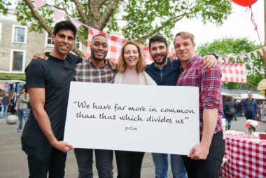 There was a football tournament for young people, free refreshments, and a crafting tent where children designed bunting with positive messages (with lots of glitter, of course!). Local faith and community leaders spoke to Jo Cox’s ‘more in common’ message, shared local resources and highlighted the importance of community.